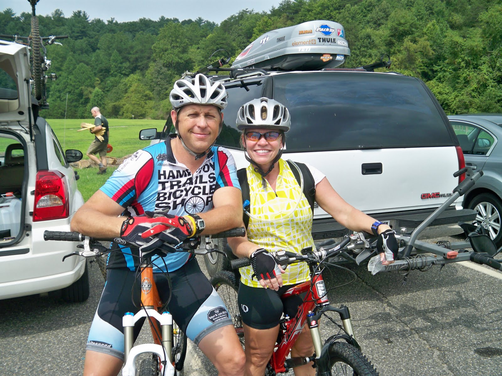 Olga's dog seemed to like this....After cleaning up and throwing our tent into the dumpster... Oh yea, when we got back from the ride we made a late lunch in the torrential downpour. The locals said that we received 2" of rain in 1 hour there. Well my 5 year old tent didn't fair so well letting everything get soaked inside including the bedding, the fly ripped and the EZ-UP fell in. I gave it a proper funeral into the park dumpster...poles and all. I should have taken a picture but I didn't. DC and I cleaned up, packed up and loaded all our stuff into the hoopty. We decided to hang out at the group site until about 9-10pm then drive back home. I had pre-reg for the last gone-riding event but really didn't care to race in the wet all day the next day so we took it back across the mountain. We had a blast with everyone and the girls got into some electronic version of guess what this is? Sorry I don't remember the name. and they were cackling like a bunch of hens on crack, it was a hilarious!