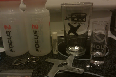 Sweet XTR bottle opener, XTR Dyna-Sys pint glass for some tasty adult beverages, knolly shot glass for your jagermeister and chap stick baby!